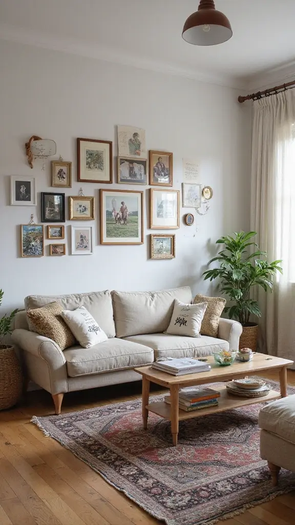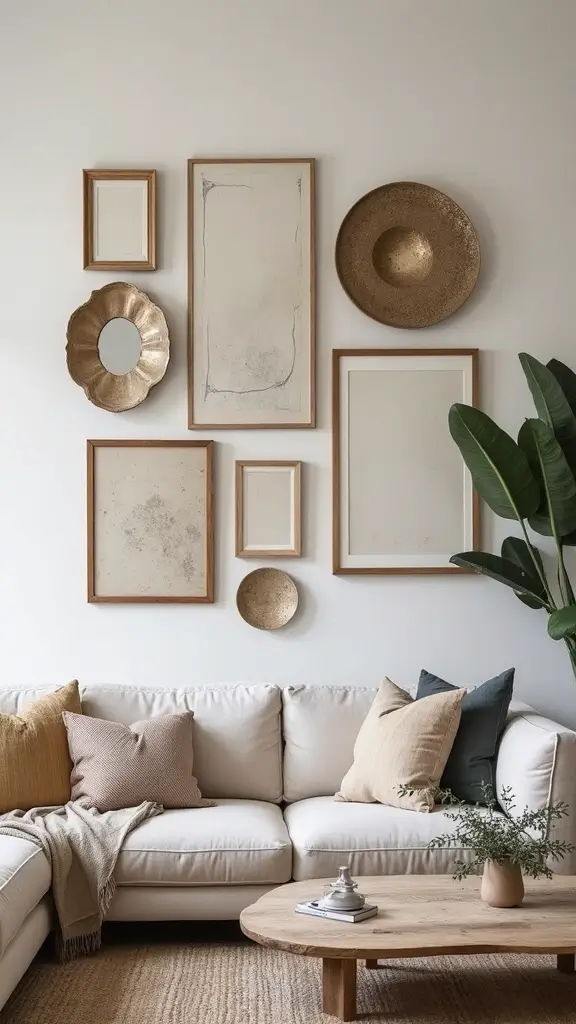 Art plays a crucial role in boho style, especially in smaller spaces. Creating a gallery wall with a mix of framed art, mirrors, and woven pieces adds texture and interest to your living room. Choose art that represents your personality and brings you joy, whether it’s abstract prints or travel-themed pieces. This trend helps personalize your space while making a bold statement.