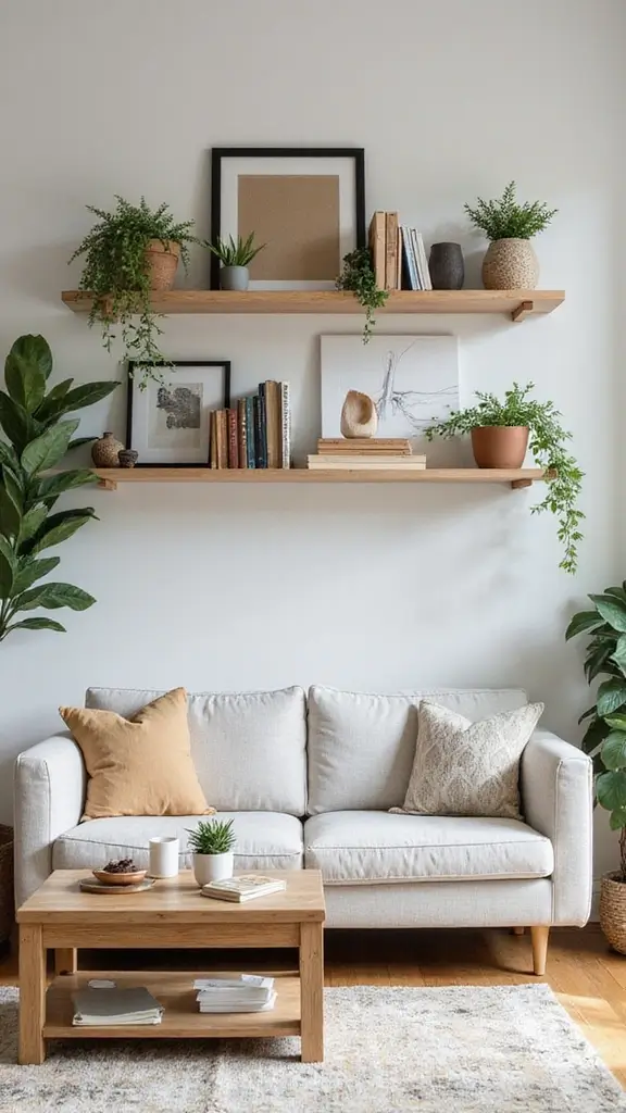 Using earthy tones like terracotta, olive green, and sandy beige can turn your small space into a peaceful retreat. These colors create a warm and inviting foundation. Pair them with textures like a soft jute rug, linen cushions, and macrame wall hangings to enhance the cozy atmosphere. Pinterest showcases these trends, making them a popular choice for creating a serene environment in your living room.