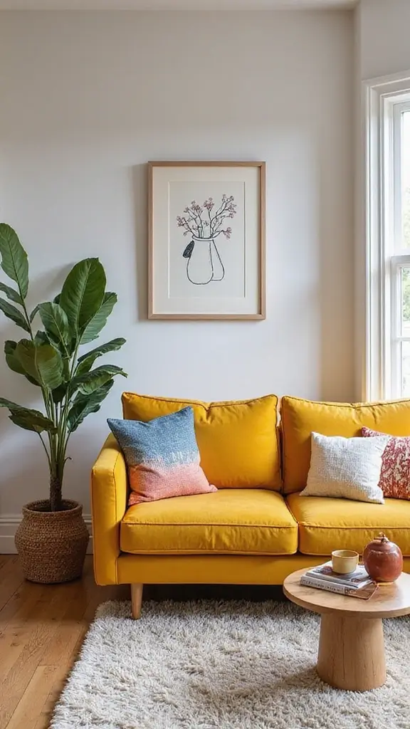 Bright accents will energize your living room while maintaining a harmonious ambiance.