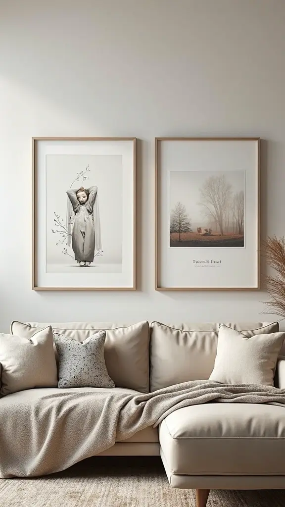 To use customized prints, feature a central piece that draws attention, like a large print over the sofa. Create a gallery wall by mixing different prints for an eclectic style. Experiment with various frame styles for a dynamic and interesting look.