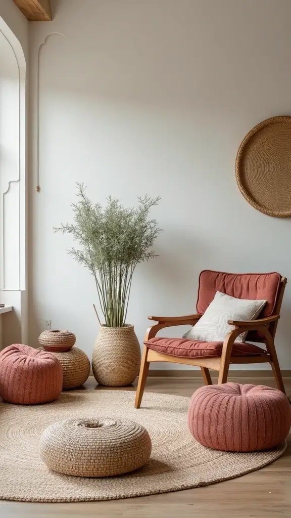 This diverse seating will enhance both functionality and bohemian charm in your living room.
