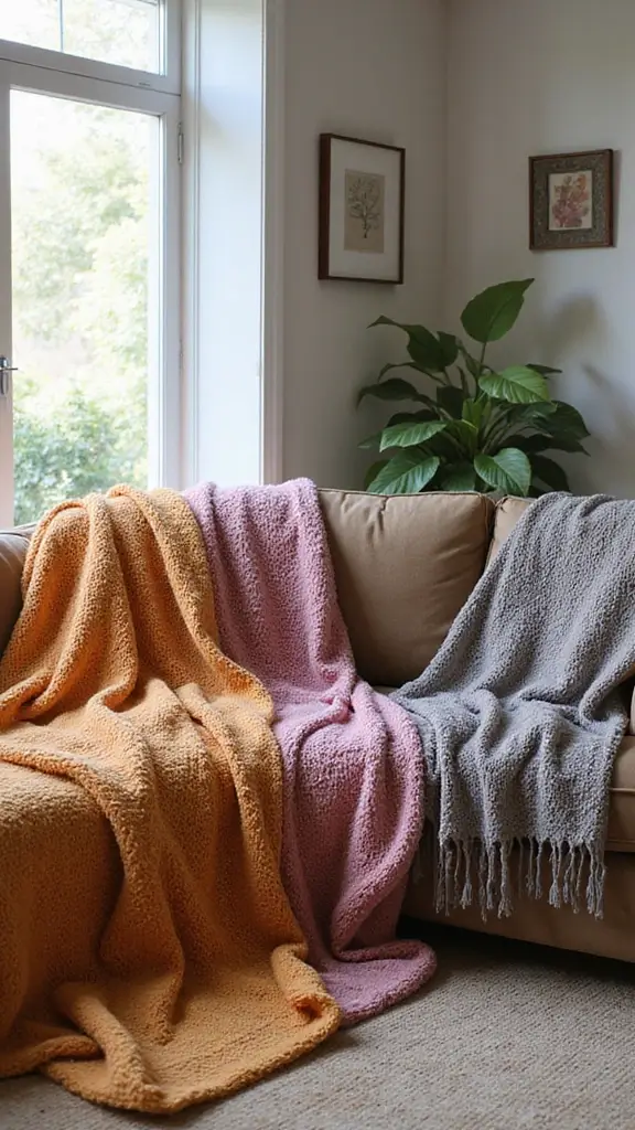 To use throws effectively, mix and match different textures like knitted and fringed throws for a layered look. Changing your throws with the seasons can keep your decor feeling fresh all year. Additionally, use them as practical items for warmth during colder months.