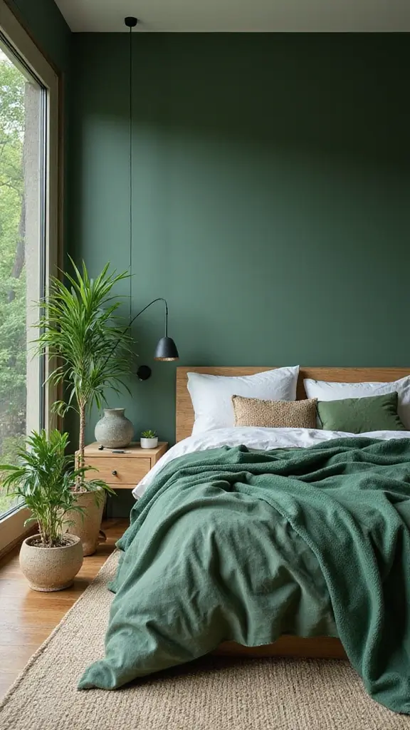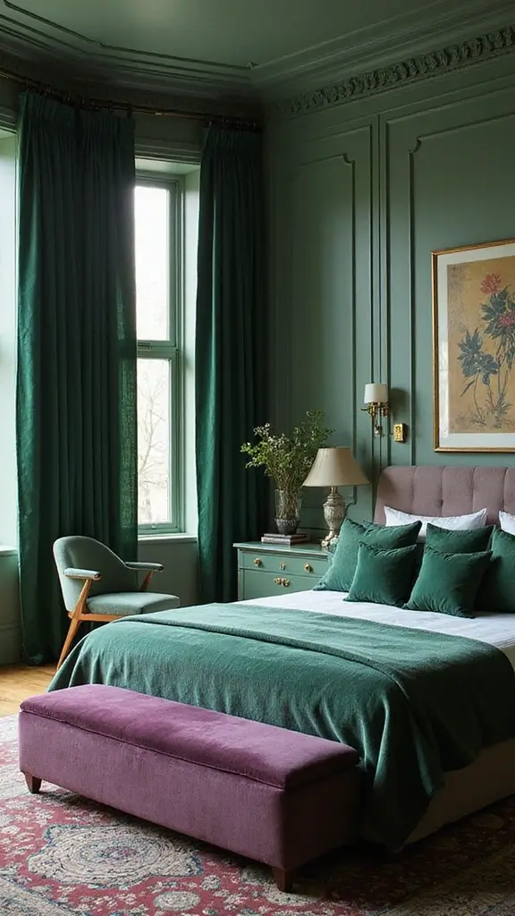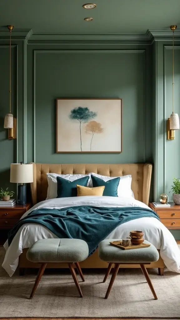 For a rich and timeless look, pair sage green with deep forest green. This monochromatic scheme creates a nature-inspired retreat that feels calming and rejuvenating. Use forest green in your bedding, curtains, or accent pieces to add depth while staying within the color palette.