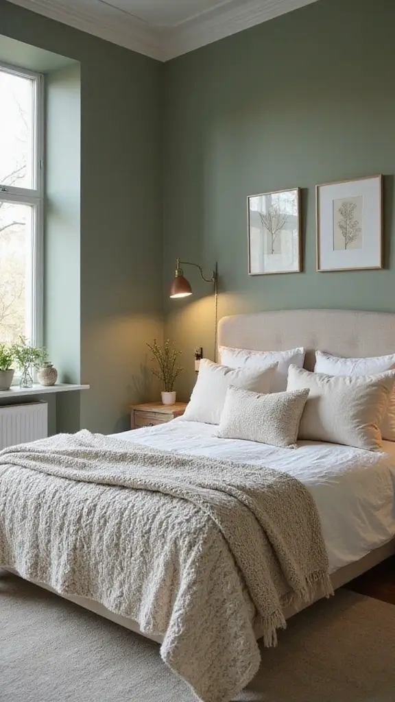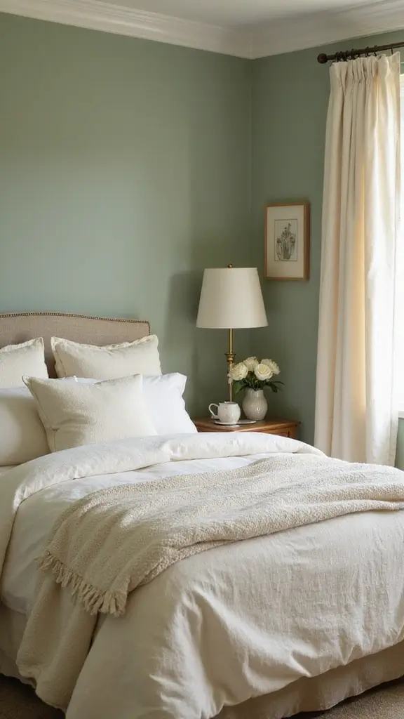 Sage green and cream create a soft, cozy atmosphere in your bedroom. This soothing palette enhances a sense of calm and comfort. Consider cream-colored bedding, curtains, and accessories to keep the space light and airy while complementing the sage beautifully.