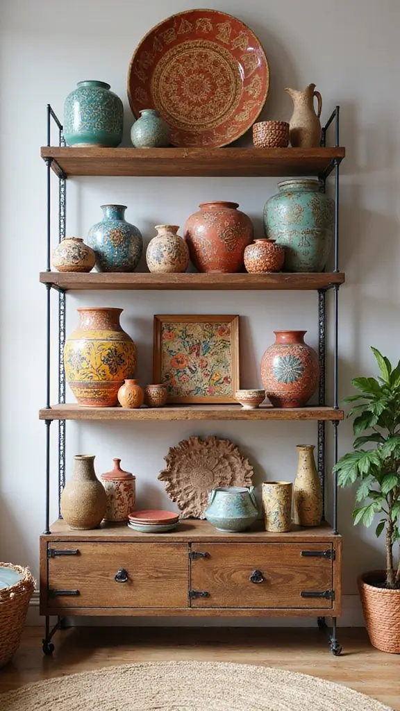 Use these shelves to exhibit colorful pottery, handwoven textiles, or vibrant art pieces. Layer items at different heights for a visually pleasing display. You can even paint the shelves to match your accent wall for a cohesive look!