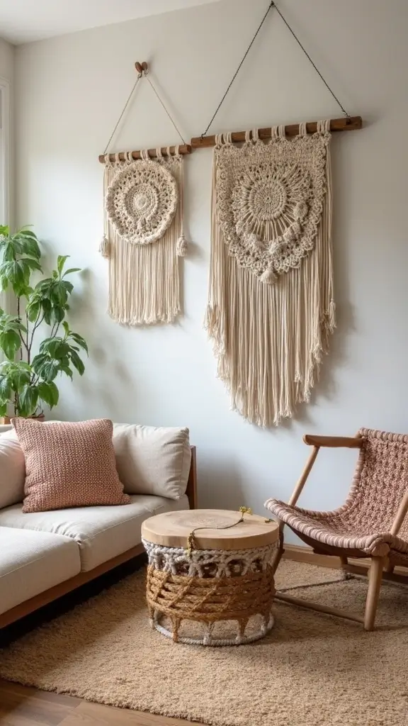 Wall hangings can add texture and depth to your decor. Look for macramé, woven pieces, or tapestries that introduce a tactile element. These items combine cultural elements with a bohemian vibe, blending styles beautifully.