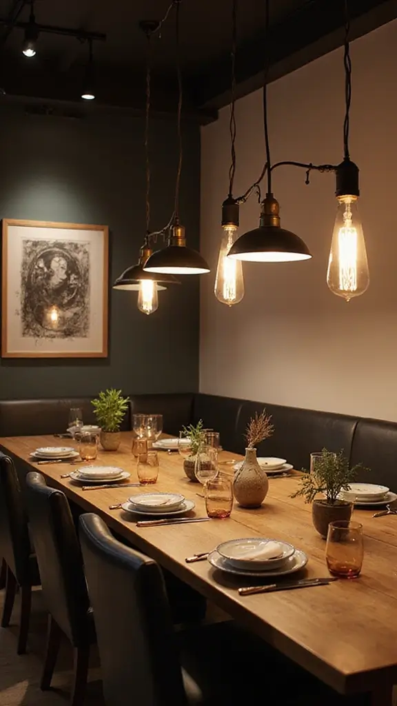 Consider hanging a large pendant over your dining table for a dramatic statement or cluster smaller fixtures to create a cozy vibe. Incorporating colored glass shades can further enhance the vibrancy of your decor.