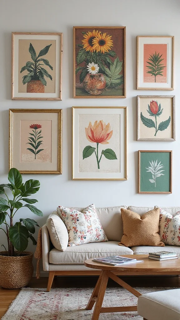 Design a captivating gallery wall filled with a mix of unique art pieces that reflect your personality. You can use framed prints, textile art, or even photographs. Mixing various frame styles and colors can create a lively visual effect. Pinterest shows that this trend is popular for adding character to any room.