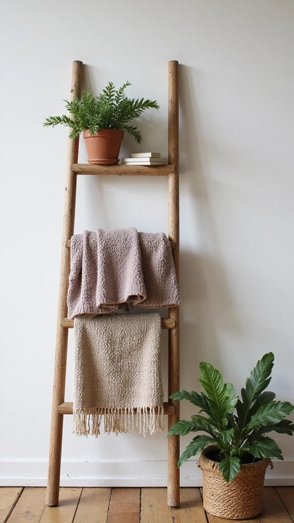 A decorative ladder can serve as both a stylish and functional piece in your home. Lean it against a wall to drape blankets, hang magazines, or display plants. Choose one made from reclaimed wood for an eco-friendly option. This trend adds rustic charm while being practical.