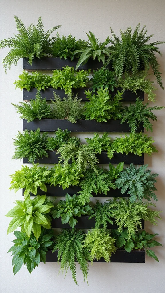 A vertical plant wall adds beauty and a touch of nature, creating a serene environment in your home.
