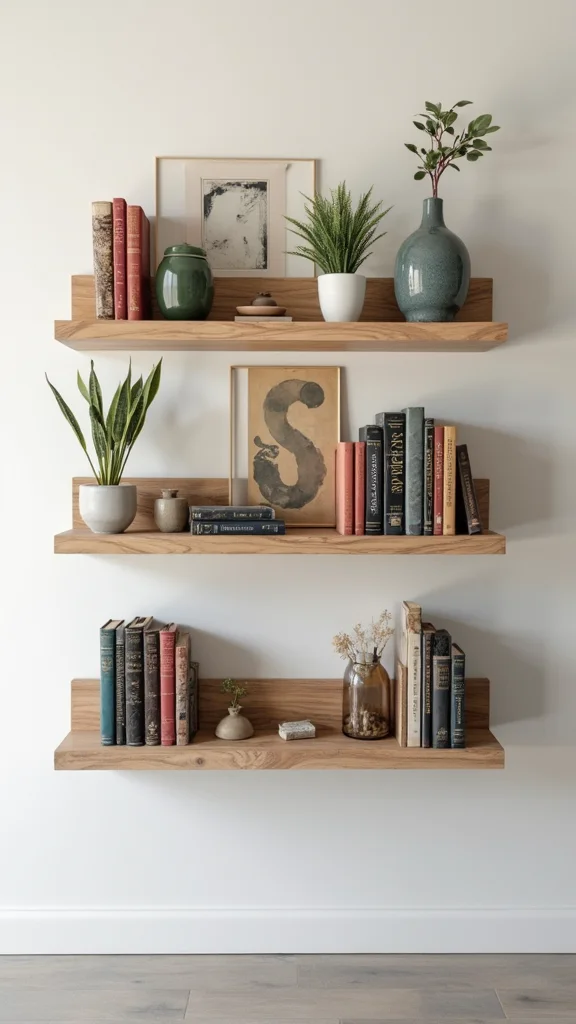 For an organized look, group items by color or theme. You can also incorporate lighting to highlight your displays and create a cozy atmosphere. This way, your shelves not only serve a purpose but also add style to your room.