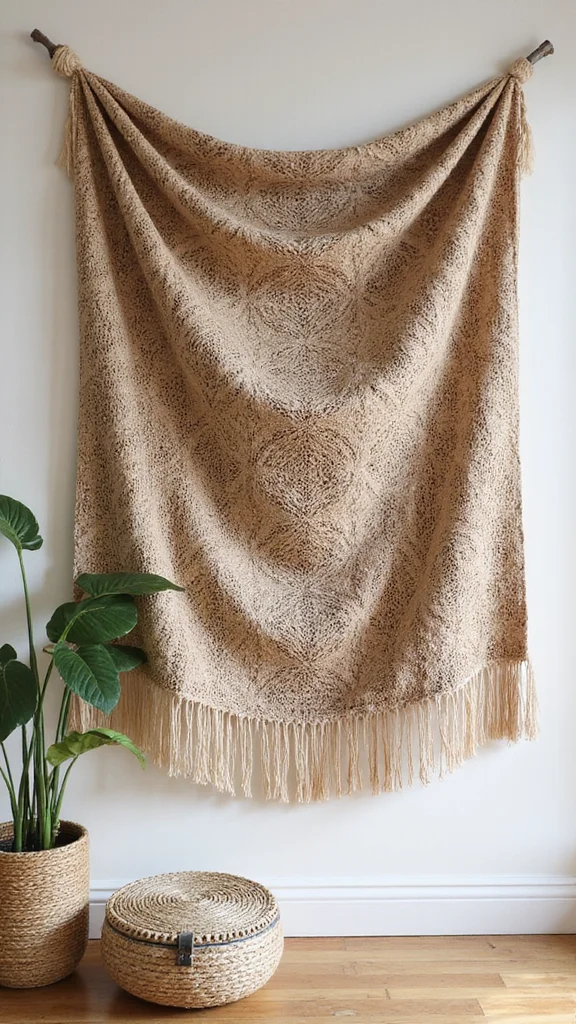 Elevate your blank wall with a large tapestry made from eco-friendly fabrics. Tapestries add warmth and character, making them a bold decor choice. Patterns can range from geometric shapes to floral prints, allowing you to personalize your space. This trend is gaining popularity for its ability to create inviting atmospheres.