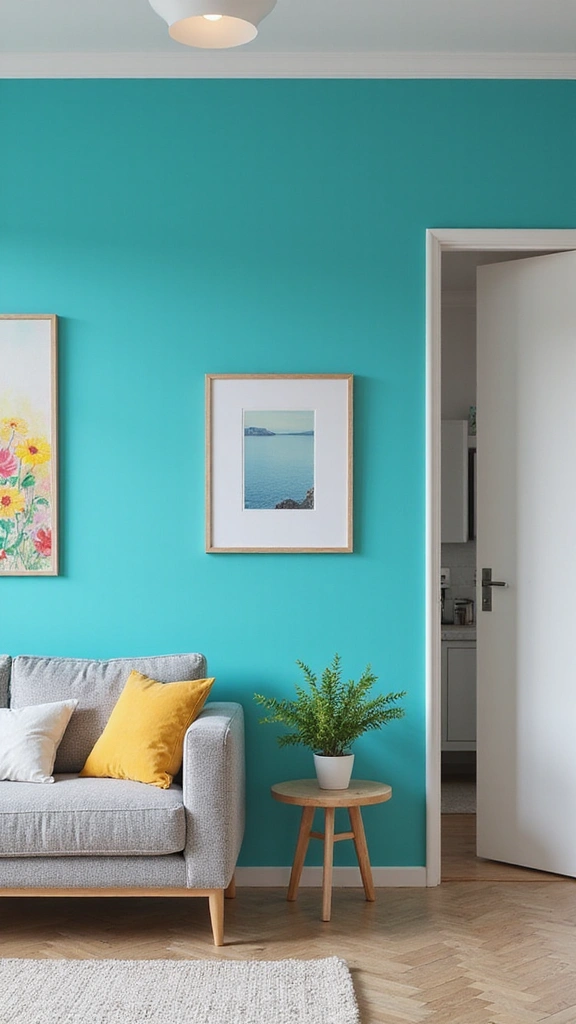 To implement this, think about pairing warm shades like coral or peach for a cozy vibe. If you’re on a budget, painting one wall is an affordable way to make a statement. Mixing two contrasting colors on different walls can also create a lively feel. This setup is perfect for making your home feel inviting and full of personality.