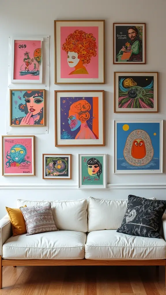 Art can transform your walls and tell your story. Look for iconic 90s art prints, such as abstract designs or pop culture references, which often burst with color. Framing these pieces in contrasting colors adds a playful touch. Creating a gallery wall with various sizes and shapes of frames can significantly impact your space, showcasing your unique style. This trend is quite popular on social media platforms.