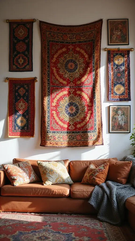 Consider using handmade textiles from local artisans to support community craftsmanship and add a unique touch. Layering these with other wall art can lend a cohesive look to your decor, making it feel thoughtfully curated.