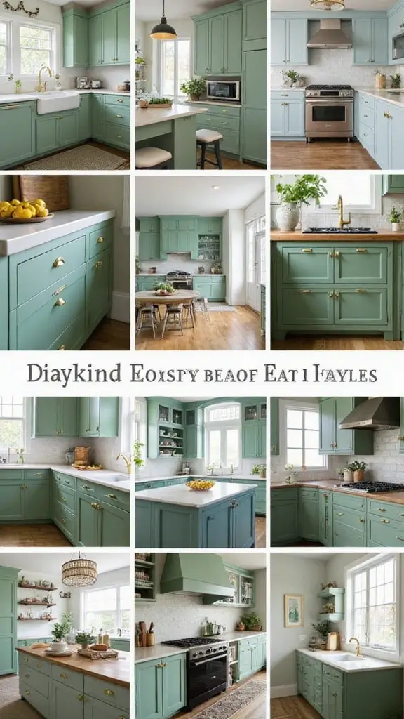 – Explore 27 unique green cabinet styles that pair beautifully with gold handles, enhancing your kitchen’s aesthetic.