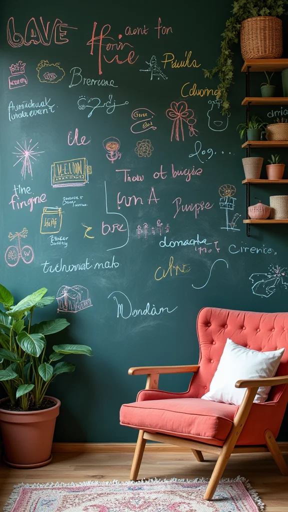 A chalkboard wall makes your home feel lively and inviting, perfect for sparking creativity.