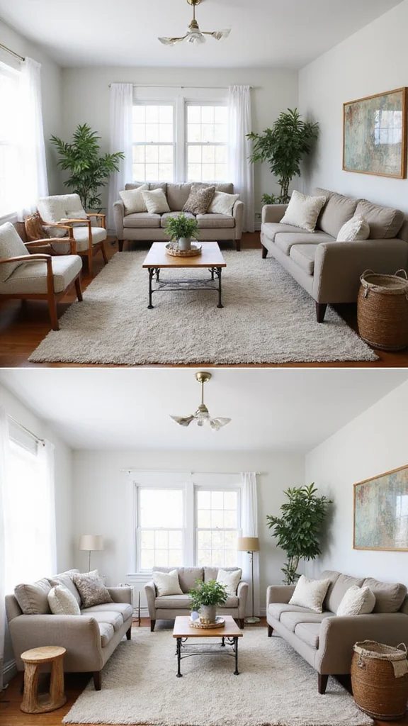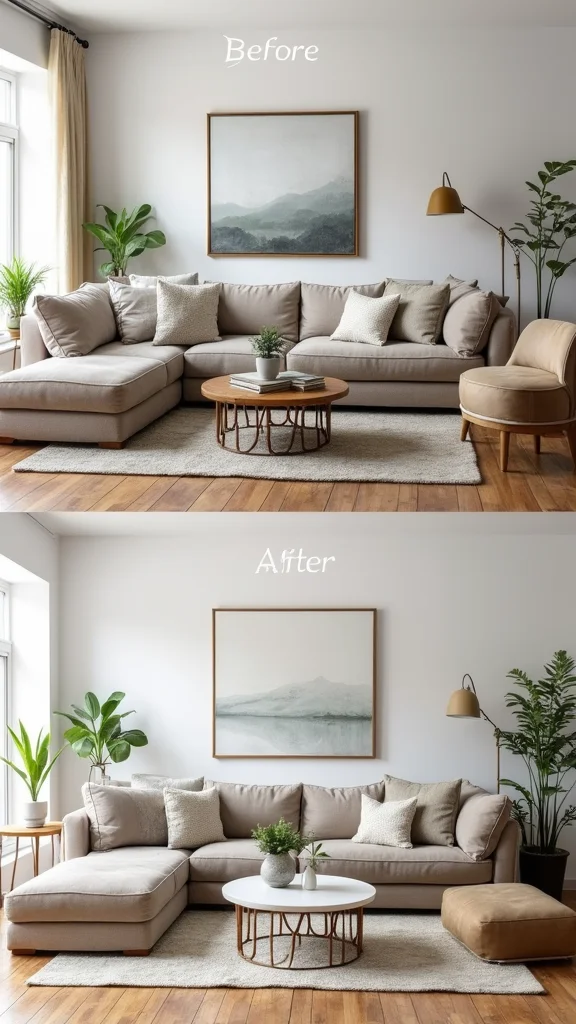 Moving your furniture can completely change the feel of your living room. Try pulling your sofa away from the walls to create a cozy and inviting space. This simple change encourages conversation and makes the room feel warm and welcoming.