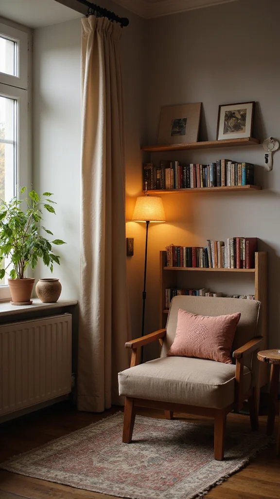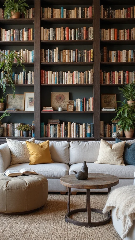 A reading nook can be a delightful addition to your living room. Choose a comfy chair or soft cushions and place them near a window or in a cozy corner. Add a small bookshelf or side table for drinks.