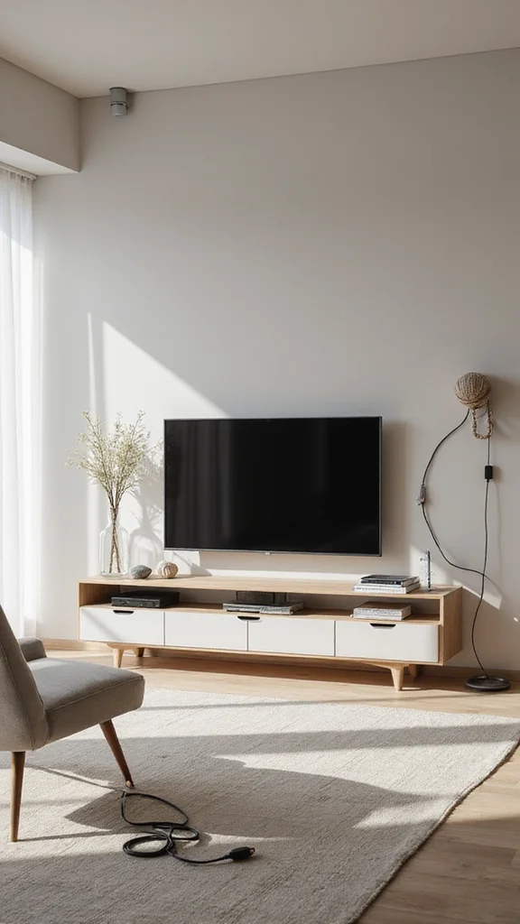 Cables can quickly turn your beautiful living room into a tangled mess. Start by grouping similar cords together and using cable management solutions like clips or sleeves to keep them neat.