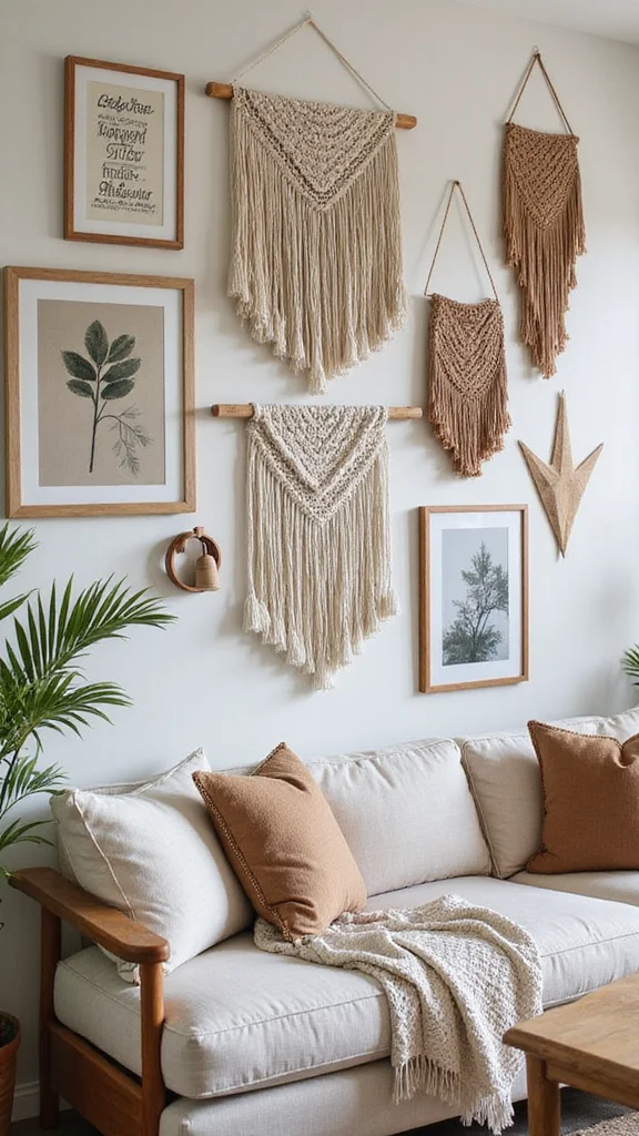 Wall hangings are a great way to add texture to your living room. Think about woven wall hangings, macrame, or fabric art to introduce unique patterns. Mixing these with framed art can create an eclectic look.