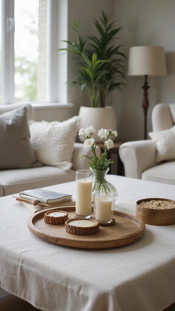 Decorative trays are a fun way to organize small items while adding style to your living room. Place trays on coffee tables or side tables to group similar items like coasters, candles, or remote controls.