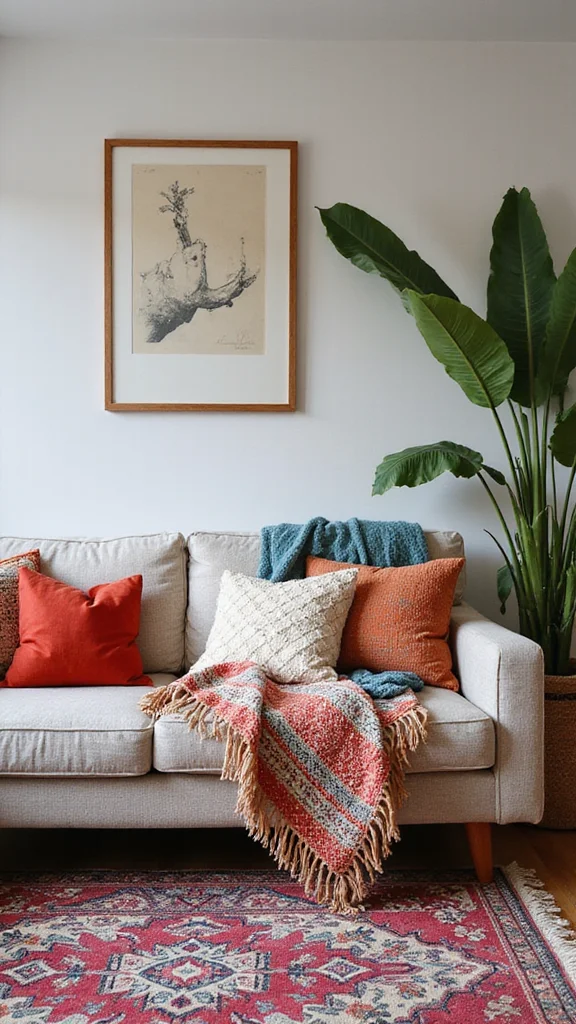 Layering textiles is an easy way to add warmth and style to your living room. Start with a neutral base, like a plain sofa or rug, then add different textured fabrics. Colorful throw pillows can instantly brighten up the space, while a cozy blanket draped on the sofa adds both comfort and flair.