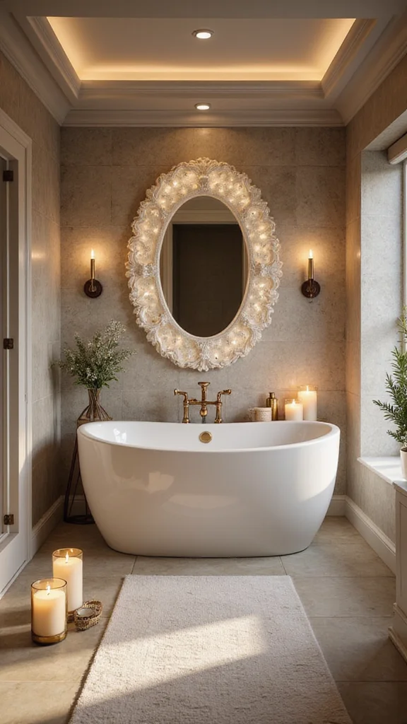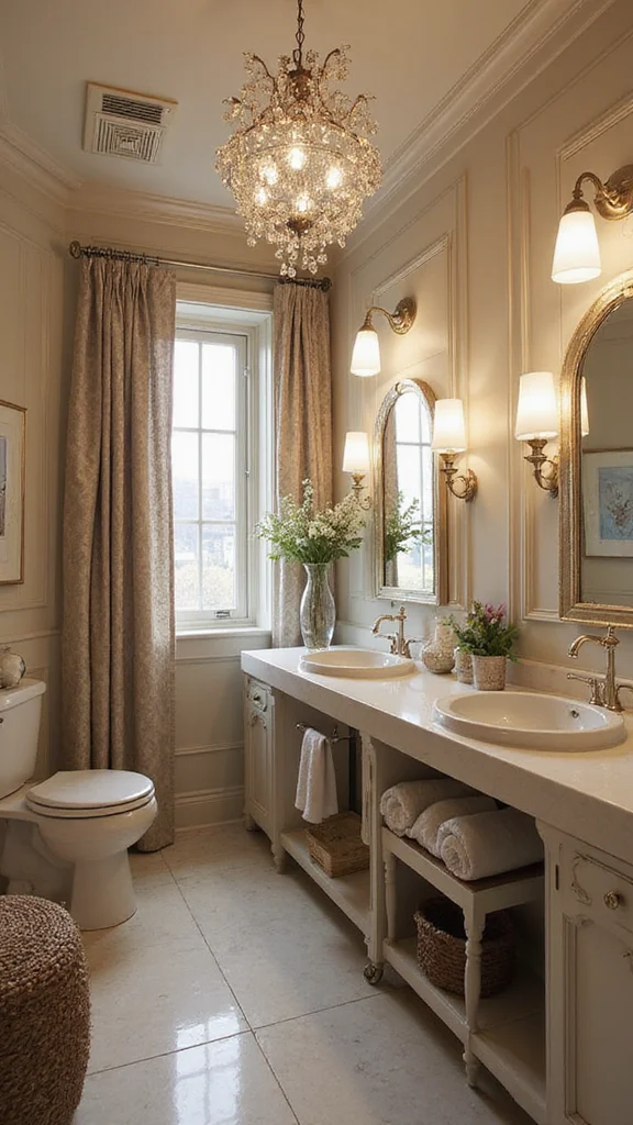 Use plush towels, stylish rugs, and beautiful curtains to enhance comfort and luxury. Rich fabrics with intricate patterns evoke a vintage feel, while smooth materials can provide modern elegance.