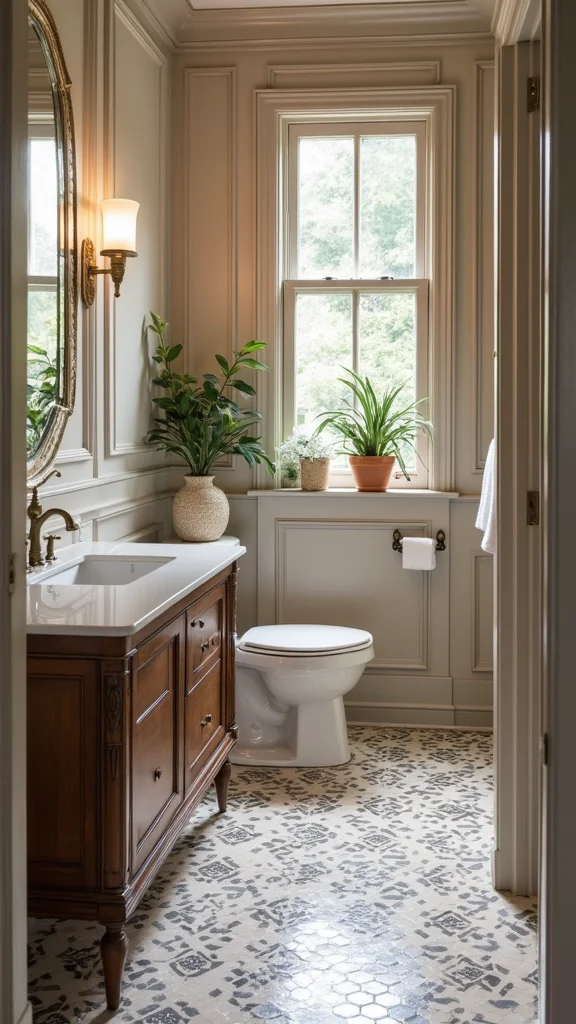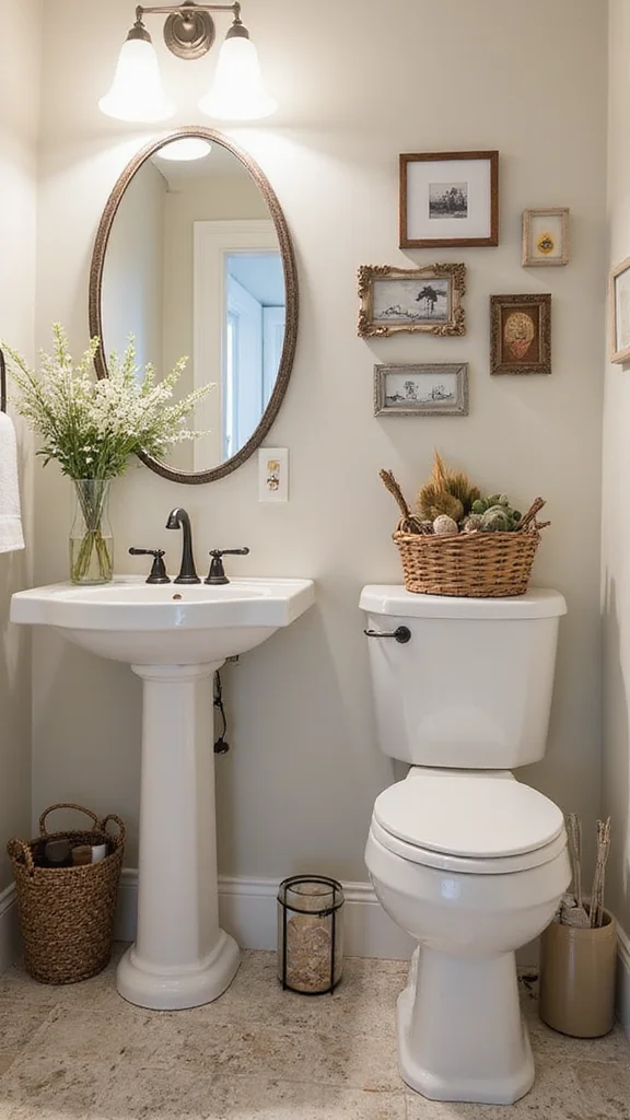 Vintage finds add a unique charm and history to your powder room.