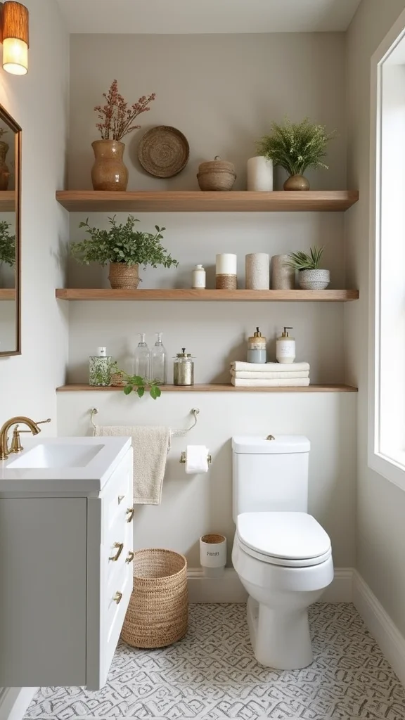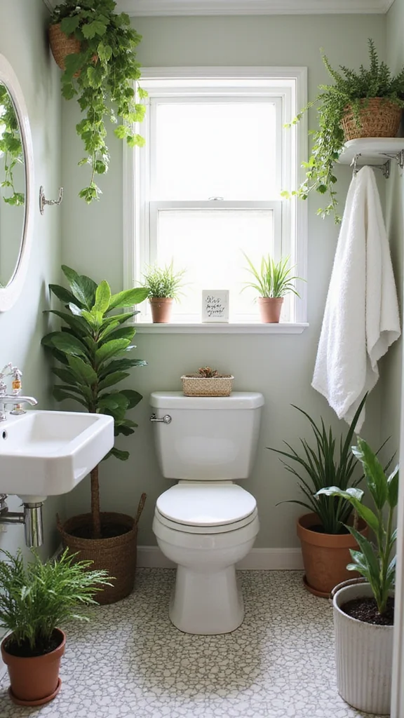 Adding greenery brings life into your powder room.