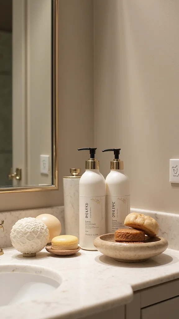 Opt for beautifully packaged products that not only smell delightful but also serve as decor. Consider a chic soap dispenser or an elegant soap dish to enhance the aesthetic.