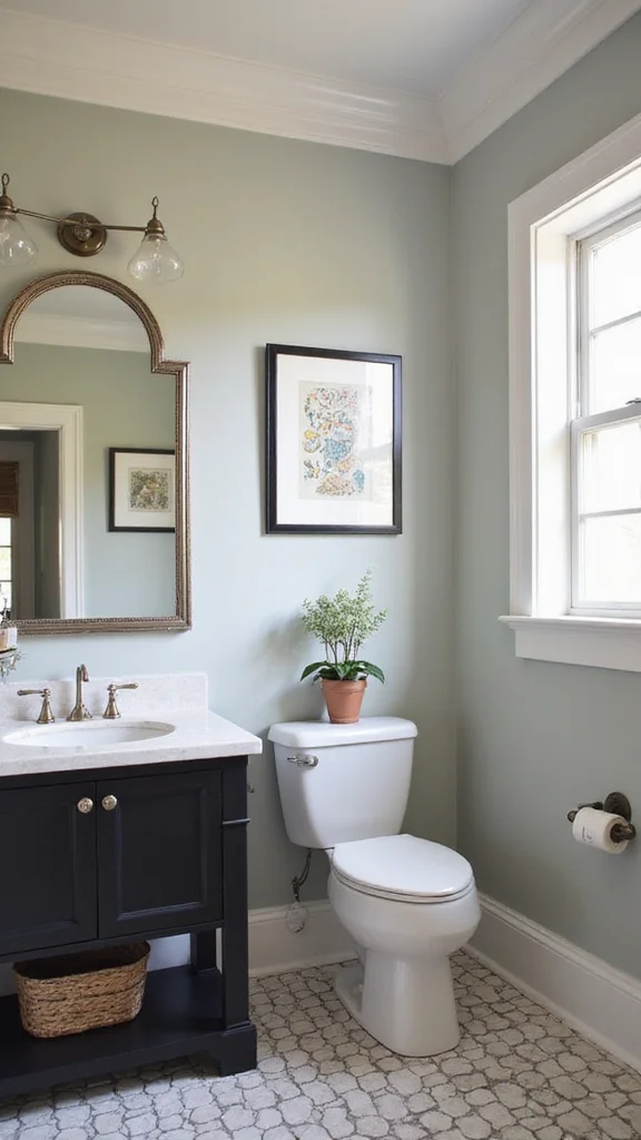 Opt for a large, beautifully framed mirror to act as the focal point of your powder room. Vintage frames from thrift stores can provide a unique accent, or choose a sleek modern design for a minimalist look.