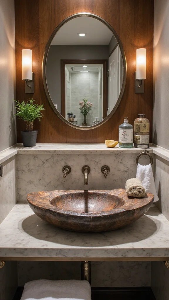 Make a statement with a unique sink that adds character to your powder room.