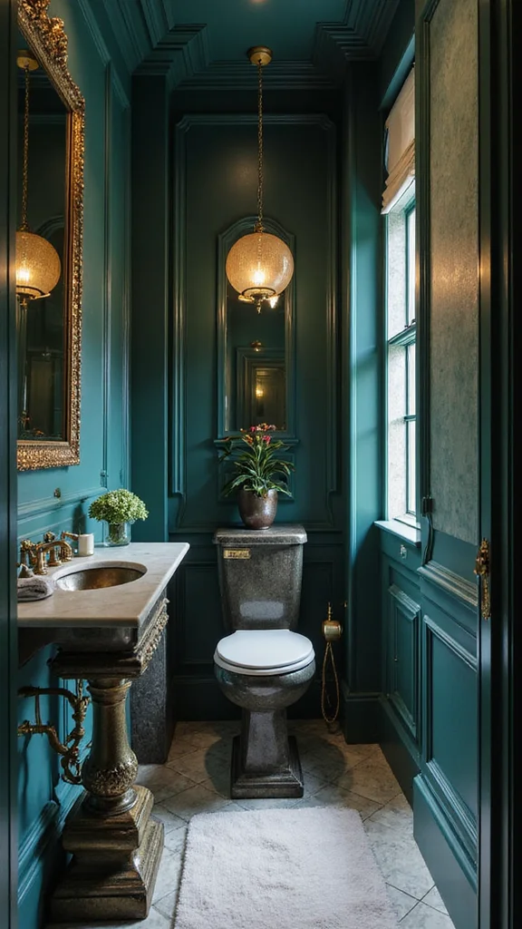 For a luxury powder room, consider rich, deep colors like emerald green, navy blue, or even a sophisticated black. These hues can create a dramatic backdrop for your decor.