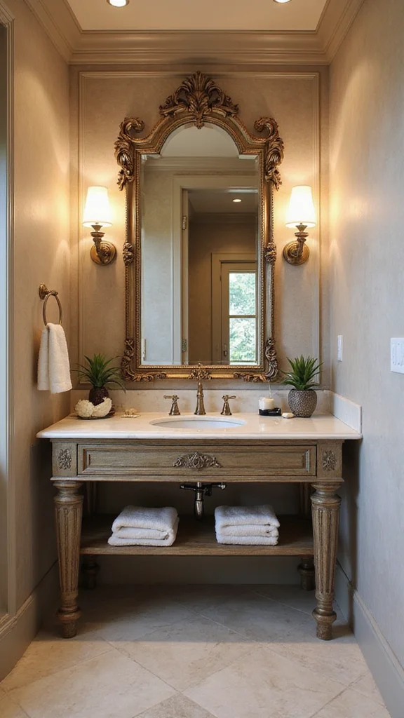 Incorporating vintage finds into your luxury powder room decor can be as simple as selecting a stunning antique mirror or a unique sink. Look for pieces that bring a sense of nostalgia and character to the space.