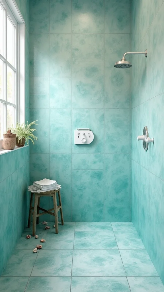 Pairing them with white fixtures keeps the look light and airy. Incorporate elements like seashells or driftwood to enhance the coastal feel. Ensuring good ventilation will help maintain that fresh, clean atmosphere in your shower.
