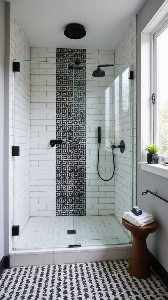 A classic black and white theme can offer a striking yet timeless appearance in your shower. This contrast provides sophistication and fun, creating a high-end atmosphere that is easy to maintain. Consider using large black tiles paired with smaller white tiles for visual impact.
