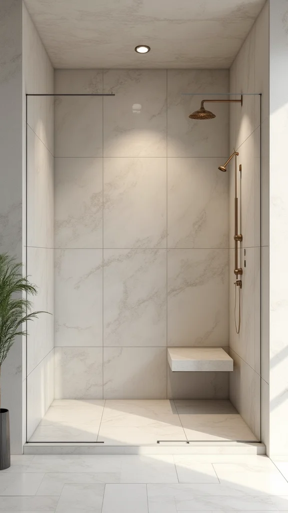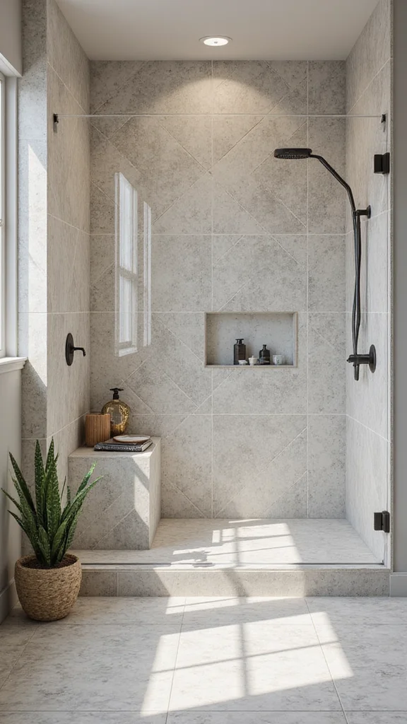 Large format tiles are ideal for creating a sleek, seamless look in your shower, reducing the number of grout lines. This not only enhances the modern vibe but also gives the illusion of more space. Choosing large tiles can transform your bathroom into an expansive retreat.