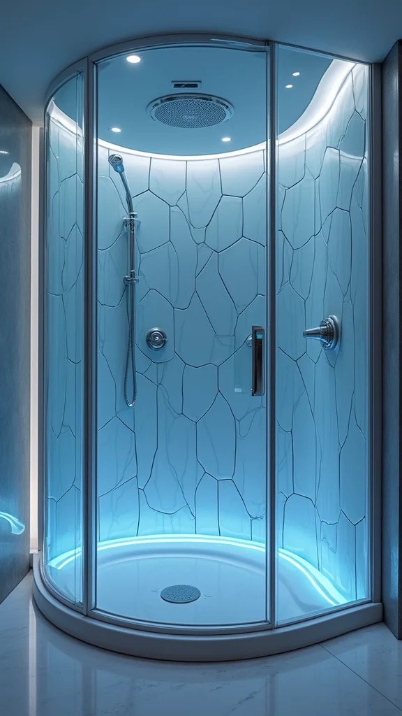 Futuristic tile designs can give your shower a cutting-edge look. Whether you choose tiles with glowing elements or unique shapes, these designs elevate your space. To style effectively, consider integrating technology like smart shower heads and lighting for a modern touch.