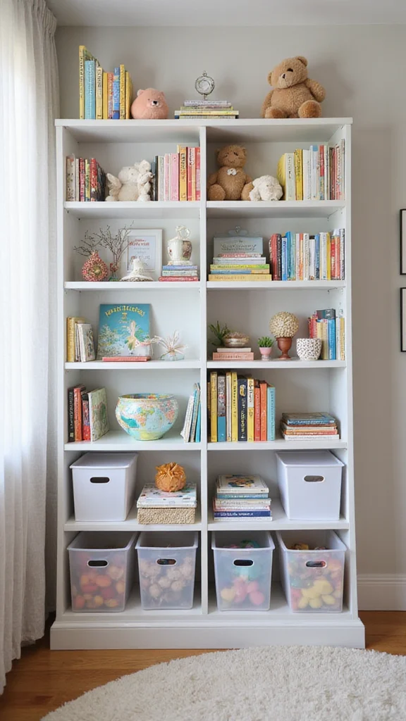 To make the most of these baskets, categorize items by type for easy access. You can display soft toys or colorful books on shelves as decor. Rotating seasonal toys keeps the area fresh and engaging for your little one, making clean-up time more fun!
