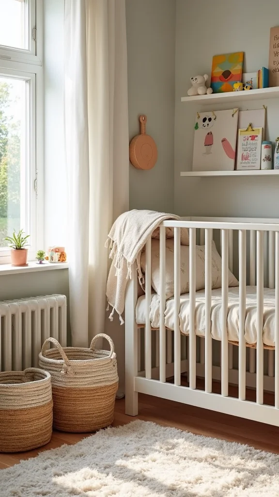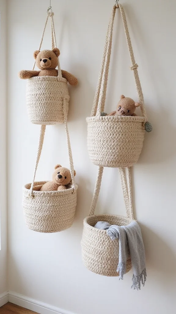 For hanging tips, ensure the baskets are securely fastened to avoid accidents. Use them to create a focal point above changing stations or cribs, drawing the eye upward. Consider using seasonal decor within the baskets, adding a fun touch that refreshes the nursery regularly.