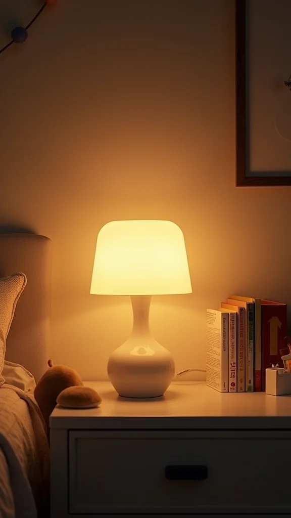 For a relaxing atmosphere, opt for warm bulb tones that create a soothing environment. Considering a dimmer function allows for adjustable brightness, perfect for your little one’s bedtime. Make sure cords are neatly secured to avoid any hazards, ensuring a safe space for your child.
