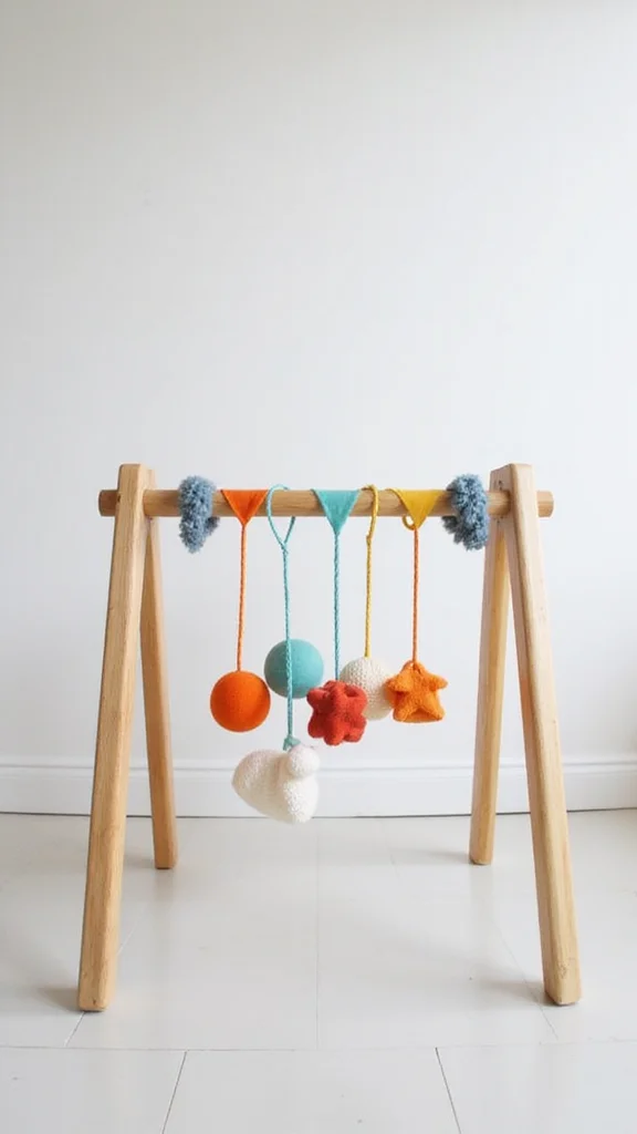 For your DIY baby gym, choose natural materials for toys to keep it safe for your little one. Change the toys regularly to keep your baby engaged. Remember to place soft mats underneath for safety during playtime, making it a fun and secure space for your baby.