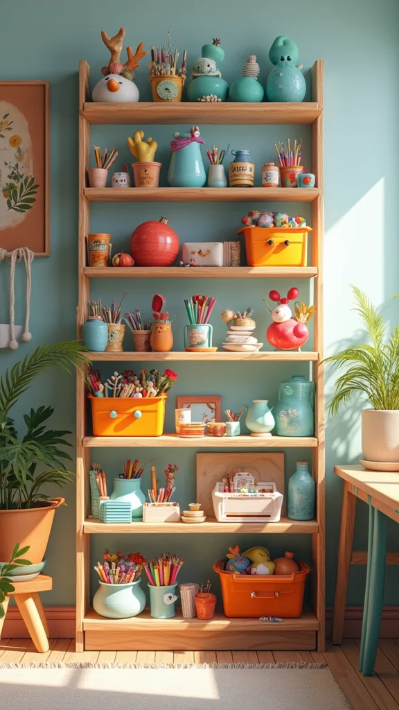 Create a crafting corner with an IVAR shelving unit perfect for seasonal projects! Use the open shelves to display art supplies and holiday decorations, keeping everything neat and inviting. This area encourages exploration and creativity for your child. You can also add a small table nearby for crafting sessions, making it easy to switch decorations as the seasons change.