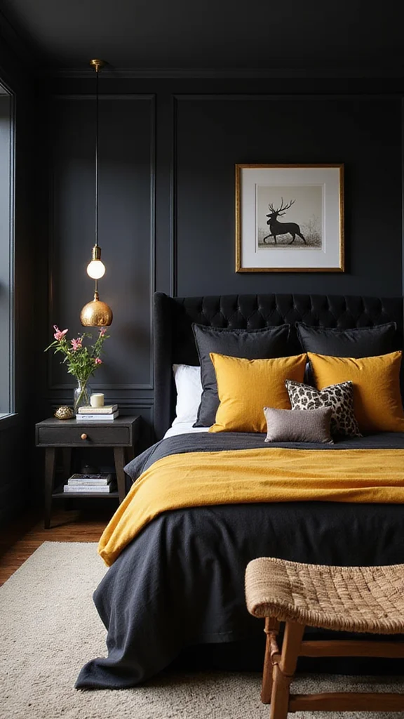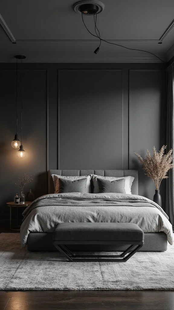 Picture a charcoal gray wall paired with crisp white bedding and black accents. This combination feels both modern and classic, drawing attention to architectural features in the room. Monochrome palettes also allow for creative textural contrasts.