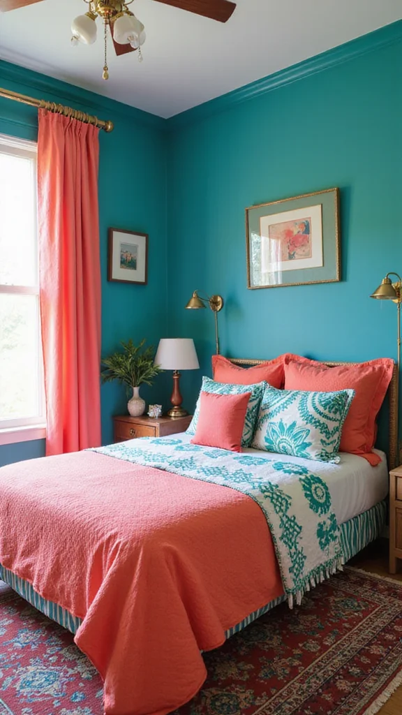 To use contrasting colors, try an accent wall in teal paired with coral accessories. This instantly adds flair and modernity, enhancing the charm of your room. Just remember to balance bold colors with neutrals to maintain harmony.