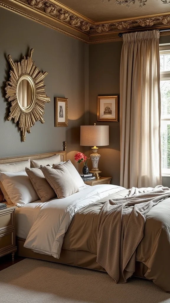 Metallic finishes, especially silver and gold, can elevate the elegance of your bedroom. These shimmering accents catch the light beautifully, adding interest and depth to your decor while nodding to Victorian luxury. When balanced with softer colors, metallics create a glamorous yet inviting environment.