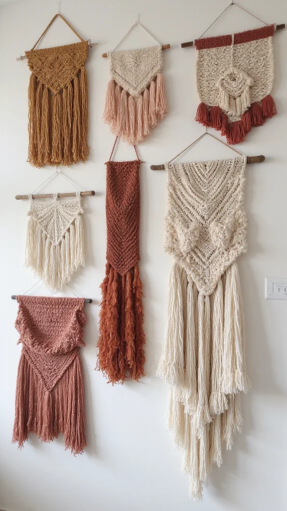 Add warmth and texture to your space with beautiful textile wall hangings. Think macramé or woven pieces that pop with rich colors and patterns. Pinterest is buzzing with these cozy designs that instantly elevate your room’s vibe. You might choose a large tapestry behind your sofa or mix smaller pieces for a gallery effect. Experiment with different shapes and heights to create a dynamic, flowing look that screams boho chic.