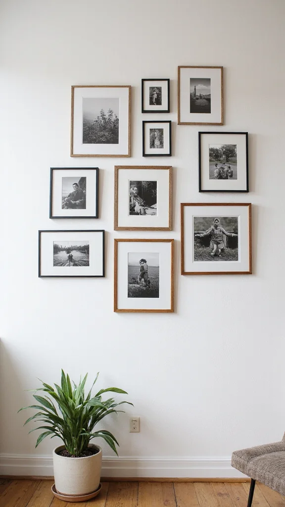 Incorporate decorative items between frames for a cohesive layout that tells your story. This project allows you to celebrate your cherished memories and showcase your personality in a beautiful way. You can find affordable frames at local stores or online to create your unique display.