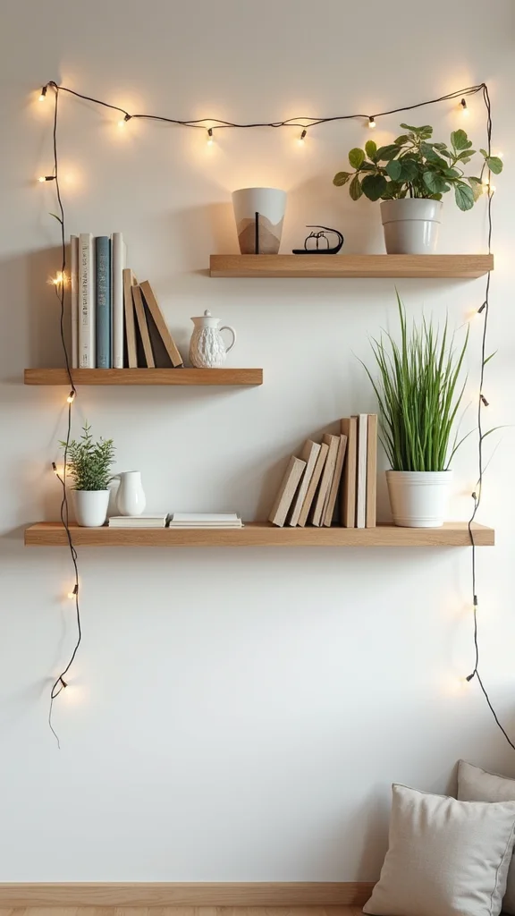 Look for affordable reclaimed wood options at hardware stores or local markets. Add string lights around the shelves for a magical touch, especially at night. This creates a cozy atmosphere, perfect for relaxing with a book or entertaining guests.